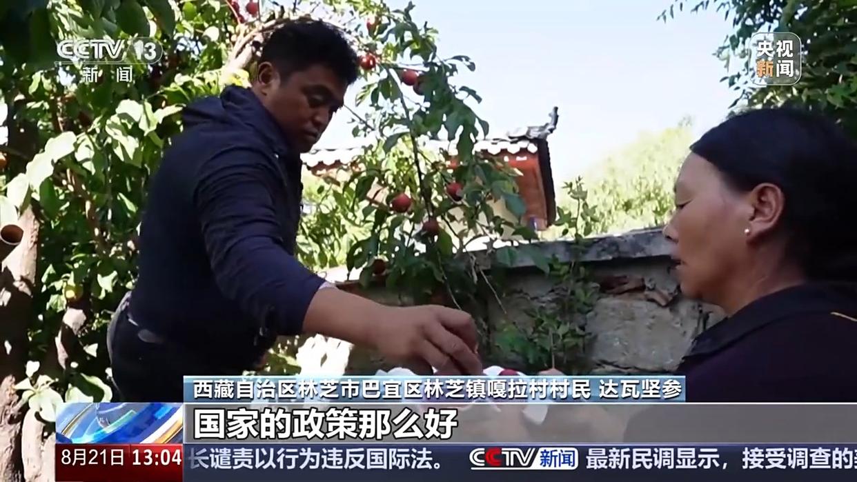 西藏自治區(qū)林芝市巴宜區(qū)林芝鎮(zhèn)嘎拉村村民 達(dá)瓦堅(jiān)參:我對(duì)現(xiàn)在的生活很滿(mǎn)意,國(guó)家的政策那么好。教育上面,孩子從幼兒園開(kāi)始都是“三包”(包吃、包住、包基本學(xué)習(xí)用品)政策,看病90%可以刷醫(yī)保。