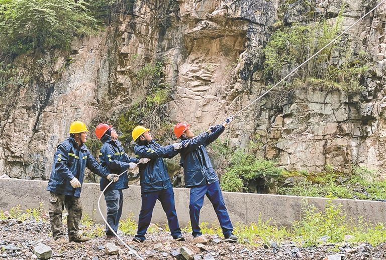 西藏開投金橋水電站黨員突擊隊(duì)緊急修復(fù)廠壩線,力保防洪度汛安全。