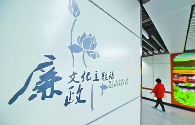長(zhǎng)沙地鐵一號(hào)線省政府·清風(fēng)站出入通道內(nèi)的廉政文化主題宣傳畫。新華社發(fā)