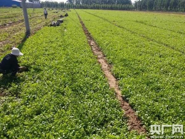 在河北省正定縣廂同村,有一片一望無際的香菜田。初夏時(shí)節(jié),正是這里最繁忙的時(shí)候。香菜已經(jīng)長(zhǎng)出綠油油的苗芽,在金色的麥田旁顯得朝氣蓬勃。