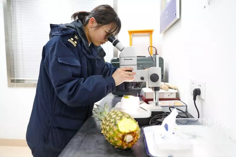 現(xiàn)場(chǎng),海關(guān)關(guān)員迅速進(jìn)行核查貨證,品名、數(shù)量、許可證、提運(yùn)單號(hào)、智利植檢證書,一一核對(duì)相符后按照規(guī)定比例抽查。一箱箱貼著“輸往中華人民共和國”中英文標(biāo)識(shí)的櫻桃被送上檢疫操作臺(tái)進(jìn)行感官檢驗(yàn),并對(duì)可疑果進(jìn)行剖果,甄別是否有地中海實(shí)蠅等檢疫性有害生物為害;揭下包裝箱標(biāo)簽,在數(shù)據(jù)平臺(tái)上查詢?cè)撆鷻烟业妮斎A櫻桃果園、包裝廠,確認(rèn)是否經(jīng)智利農(nóng)牧局(SAG)注冊(cè),并經(jīng)海關(guān)總署認(rèn)可。最后,要迅速抽取代表性的復(fù)合樣品,送實(shí)驗(yàn)室實(shí)施安全風(fēng)險(xiǎn)監(jiān)控,對(duì)農(nóng)殘和重金屬項(xiàng)目的針對(duì)性檢測(cè)。天剛蒙蒙亮,所有智利櫻桃全部通過了檢疫,檢驗(yàn)合格的智利櫻桃被迅速分銷至各大商場(chǎng)、超市以及電商渠道。摁下秒表,從櫻桃從智利起飛到進(jìn)入中國市場(chǎng),整個(gè)過程只用了不到48個(gè)小時(shí)。