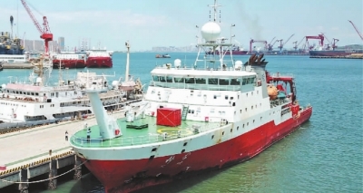 堅(jiān)持和發(fā)展中國特色社會(huì)主義,實(shí)現(xiàn)中華民族偉大復(fù)興,必須堅(jiān)定不移貫徹科教興國戰(zhàn)略和創(chuàng)新驅(qū)動(dòng)發(fā)展戰(zhàn)略,堅(jiān)定不移走科技強(qiáng)國之路。圖為靠泊在山東青島母港的“科學(xué)”號(hào)準(zhǔn)備解纜起航。