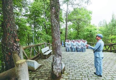 江西省瑞金市葉坪鄉(xiāng)華屋村是遠(yuǎn)近聞名的“紅軍村”。圖為游客正在參觀華屋村“信念樹”。