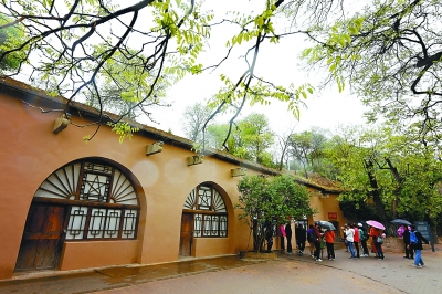 延安有中國(guó)保存最完整、面積最大的革命舊址群。圖為游客在陜西延安棗園革命舊址參觀(guān)。新華社發(fā)
