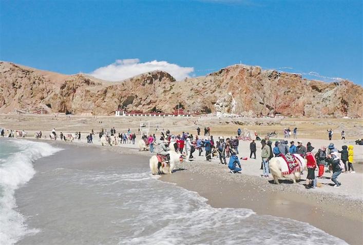 圖為游客在納木錯(cuò)游玩。記者 洛桑 攝