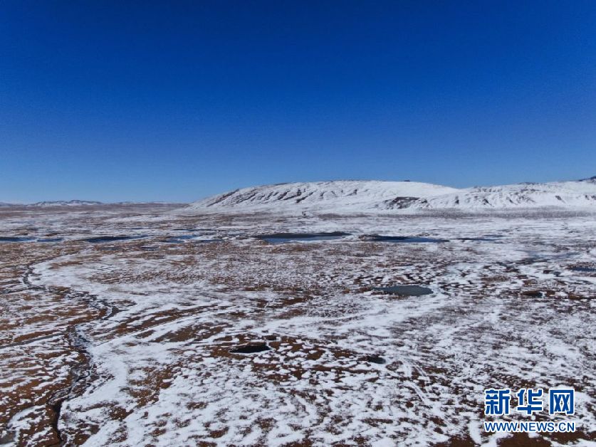 這是10月30日在青海省果洛藏族自治州瑪多縣境內(nèi)拍攝的一處濕地(無人機(jī)照片)。新華社記者 張龍 攝