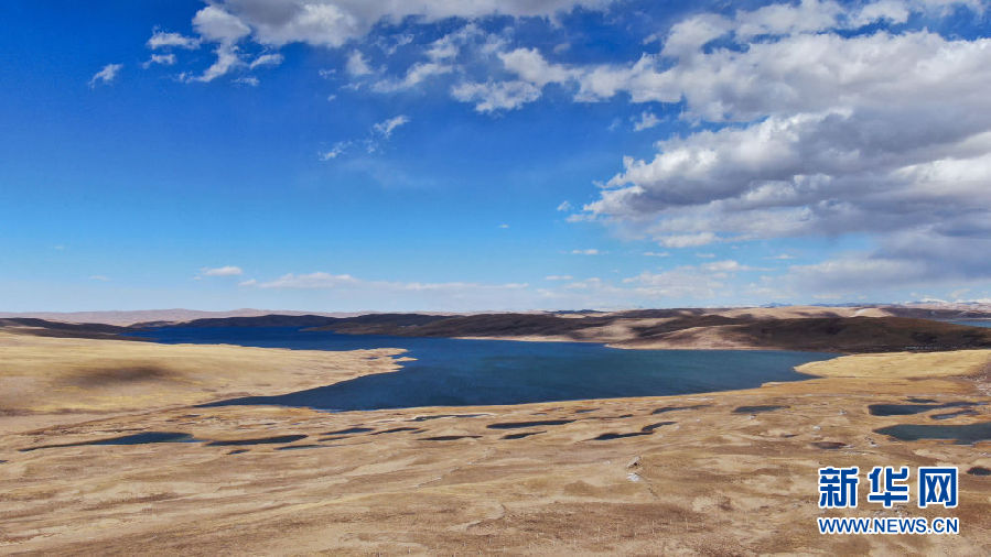 這是10月30日在青海省果洛藏族自治州瑪多縣境內(nèi)拍攝的一處湖泊(無人機(jī)照片)。新華社記者 張龍 攝