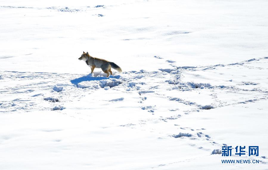 正在覓食的藏狐悠閑漫步在茫茫雪原,走走停停,只留下深深淺淺的小腳印……幾乎隨處可見的高原精靈,為冬日高原增添了無限生機(jī)。