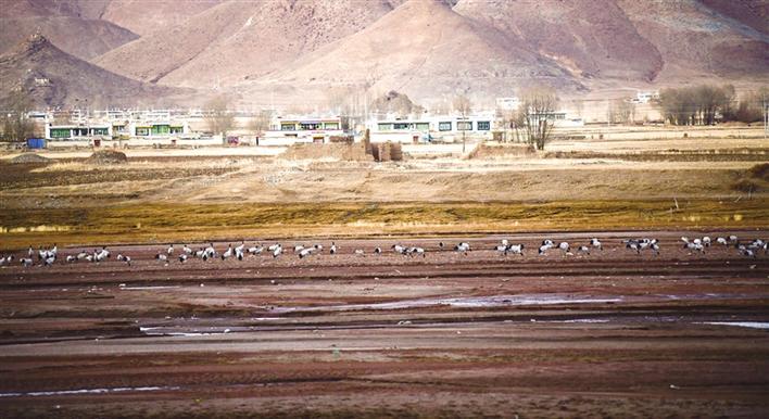 又是一年遷徙季,又是一年觀鶴時。為了繁殖和越冬,候鳥黑頸鶴每年都會進行兩次遷徙。黑頸鶴是國家一級保護動物,藏語為“沖沖”,被藏族人民譽為“吉祥鳥”。每年入冬,成群的黑頸鶴從藏北遷徙至拉薩河及雅魯藏布江流域等地越冬,次年3月中旬北上繁殖。目前,已進入越冬季,成群結隊的黑頸鶴已在拉薩市林周縣境內(nèi)如期赴約。