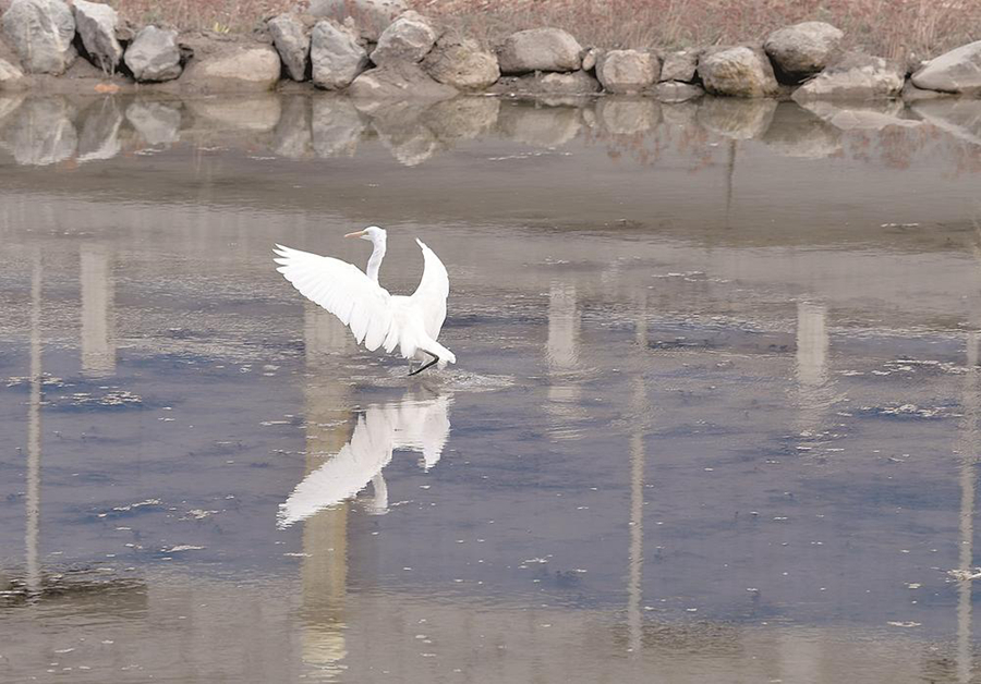 “咕、咕、咕……”11月25日13時許,走進(jìn)西寧南川河與湟水河交匯處,在清澈見底的河道里,一只大白鷺正悠然自得地來回踱步,獨自覓食,不時發(fā)出陣陣歡快的叫聲。