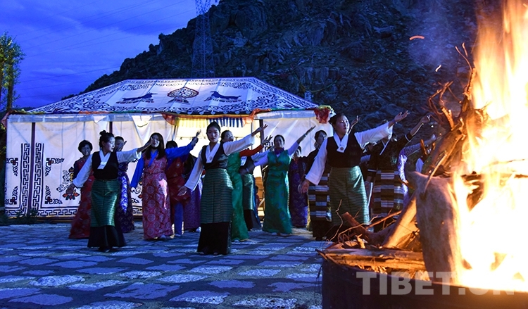 圖為拉薩市堆龍德慶區(qū)“德吉藏家”,人們圍著篝火跳鍋莊 攝影:王媛媛