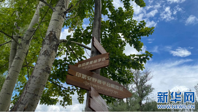 圖為薩己林野奢營地路標(biāo)(8月2號攝)。新華網(wǎng)發(fā) 丹增卓嘎(實習(xí)生)攝。