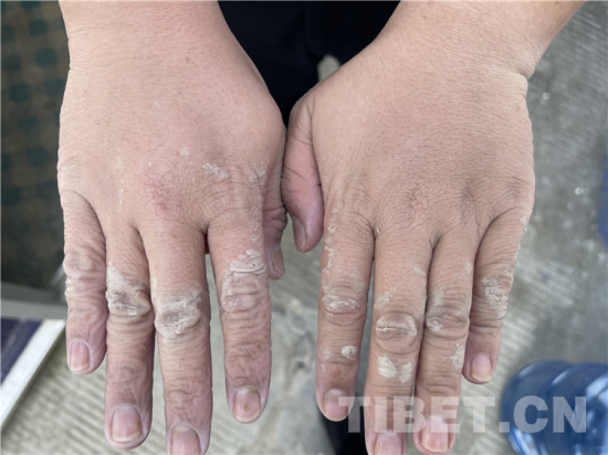摘下戴了十幾個小時的手套,每根手指都被捂皺變形,關節(jié)處的皮膚泛白腫脹——看到日喀則邊境管理支隊吉隆邊境派出所民警桂浩的手部照片,讓人不禁淚目?! ?/p>