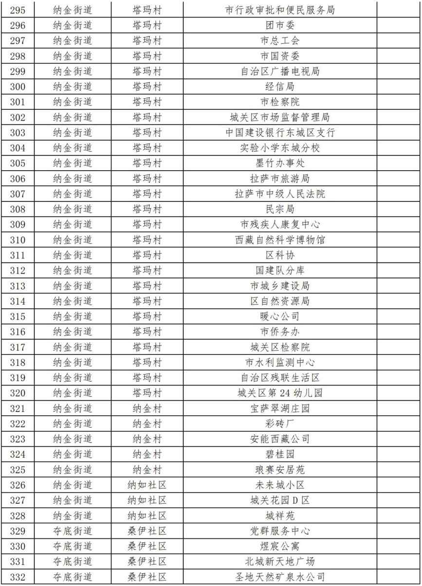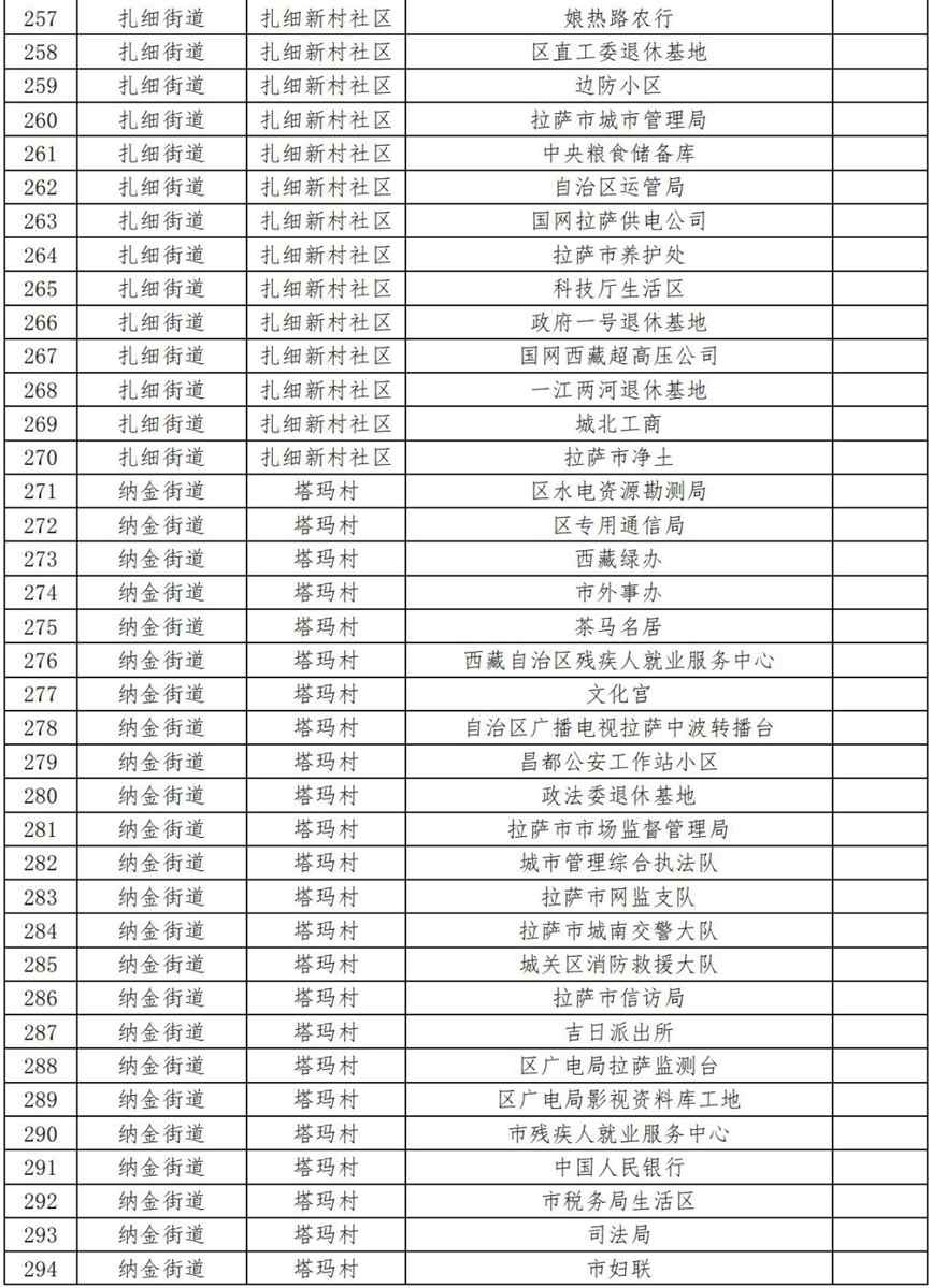 19.扎細(xì)街道團(tuán)結(jié)新村社區(qū)(拉薩市第三小學(xué)、拉薩市規(guī)劃設(shè)計(jì)院、自治區(qū)國(guó)資委、自治區(qū)藏醫(yī)院、自治區(qū)疾控中心、阜康醫(yī)院住院部、納木措賓館);