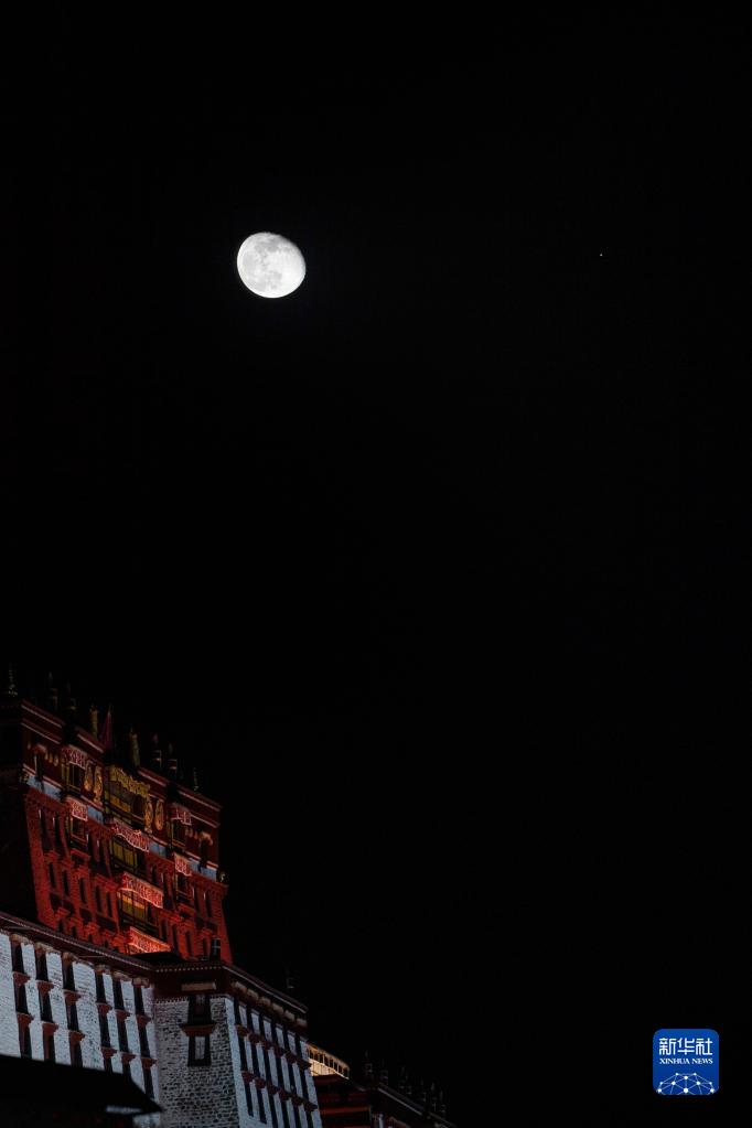11月11日晚,一次賞心悅目的火星合月亮相天宇。這是在西藏拉薩市布達(dá)拉宮附近,記錄下的這幕“星月童話”。新華社記者 劉潁 攝