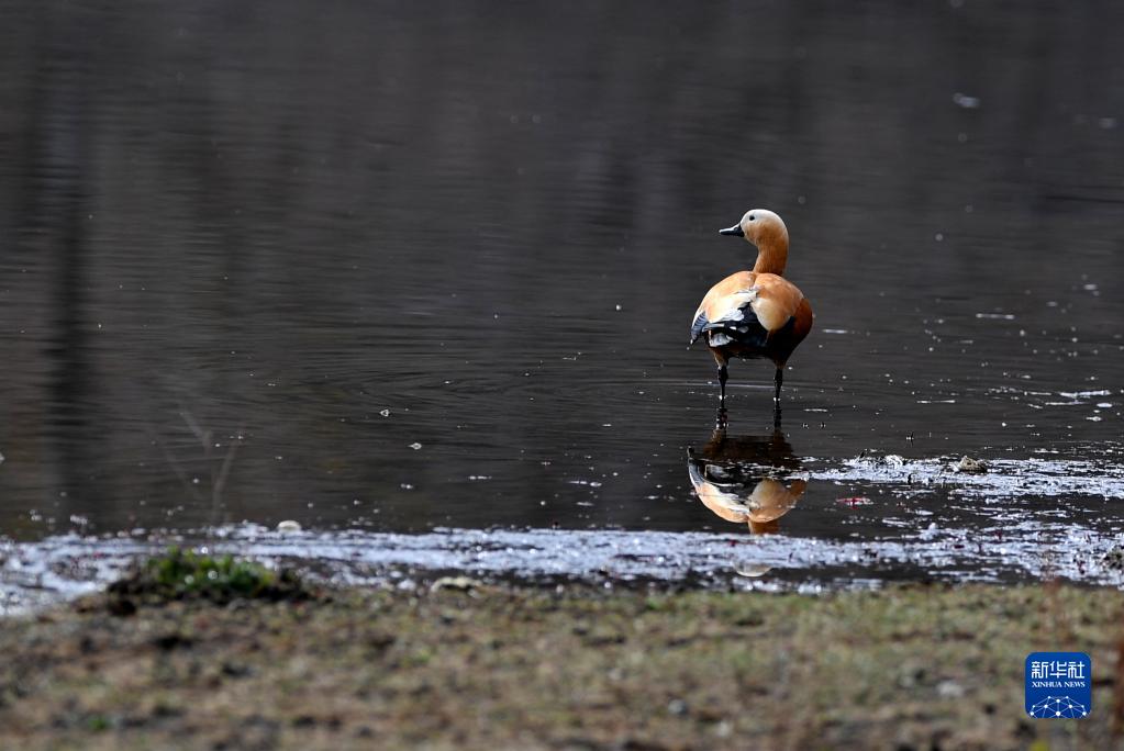 這是在拉魯濕地拍攝的赤麻鴨(3月30日攝)。新華社記者 張汝鋒 攝