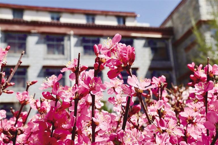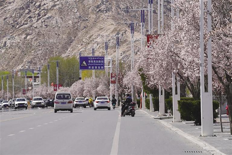 那么,去哪里查收這份“春日限定大禮包”呢?最近幾天,記者的朋友圈都被帕崩崗的美景霸屏了,一波又一波的朋友到這里打卡。除了去帕崩崗賞桃花,更不容錯(cuò)過(guò)的一定是拉薩大街小巷以及公園中驚鴻一瞥的美景。宗角祿康公園植被繁茂、古樹較多,一到春季,玫粉色的榆葉梅綻放枝頭,層層花瓣在陽(yáng)光的照耀下嬌俏動(dòng)人,一樹粉色花朵倒映在幽綠的湖水中,盡顯詩(shī)意。此外,緊鄰羅布林卡的羅堆東路也有意想不到的美景,每到這個(gè)季節(jié),紅葉李便會(huì)沿路盛開(kāi),淡粉色的花瓣搭配深紅色的花蕊,甚是好看。金珠西路沿途的景色也令人耳目一新,淡粉色的花朵肆意綻放,等紅燈時(shí)的心情因這些花朵變得不再焦灼。