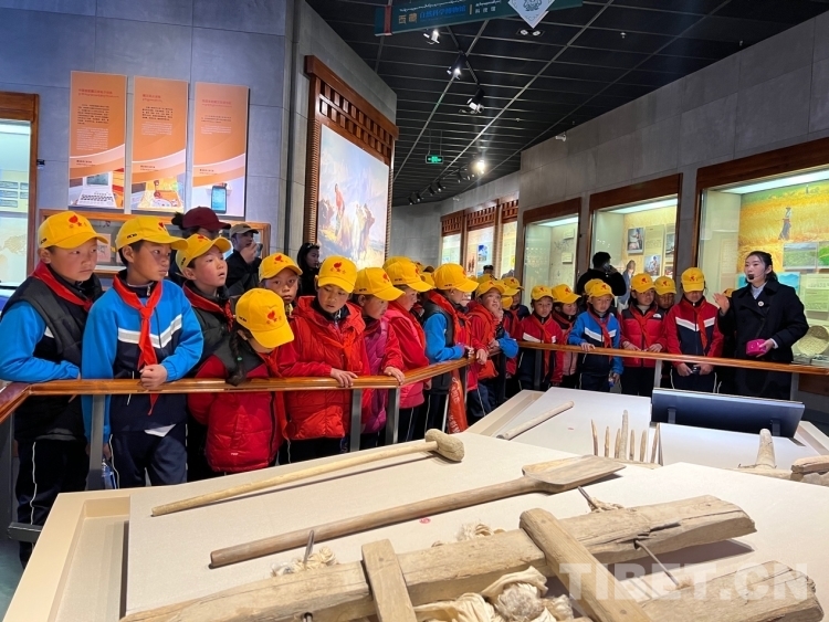 圖為學(xué)生們在參觀農(nóng)事用具 攝影:德吉卓瑪