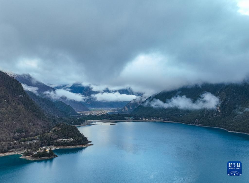 4月17日拍攝的巴松措(無人機照片)。新華社記者 曹檳 攝