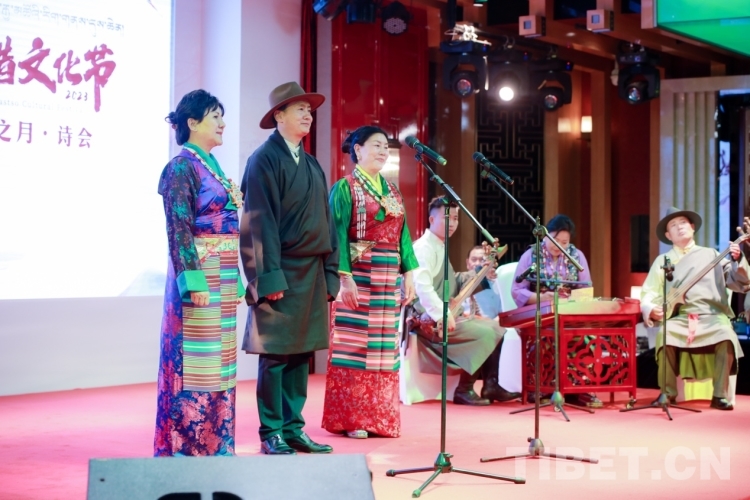 本次詩會通過朗誦倉央嘉措代表作和其他經(jīng)典文學(xué)、演唱富有民族特色的音樂作品、西藏國家級非物質(zhì)文化遺產(chǎn)“藏戲”“朗瑪堆諧”等歌舞表演形式,重溫動人的詩歌,展示以倉央嘉措文化為代表的中國傳統(tǒng)文化的魅力。在“相約吉祥之月”詩會上,著名主持人、朗誦家任志宏,朗誦藝術(shù)家徐濤,配音藝術(shù)家、著名主持人“金龜子”劉純燕等文化名人朗讀了《在那東山頂上》《心上之人》《愛在心中》《杜鵑》《無心木船》等詩歌,以飽含情感的配樂朗誦,帶領(lǐng)現(xiàn)場嘉賓走進倉央嘉措的世界。