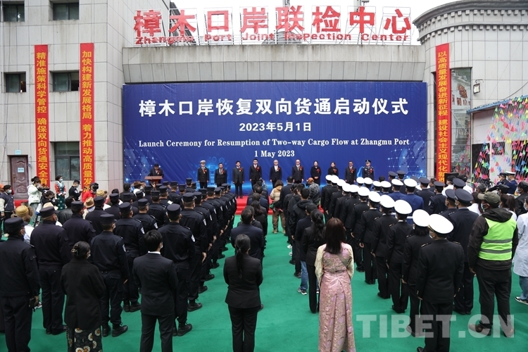 圖為樟木口岸恢復雙向貨通儀式現(xiàn)場 攝影:鄒興國