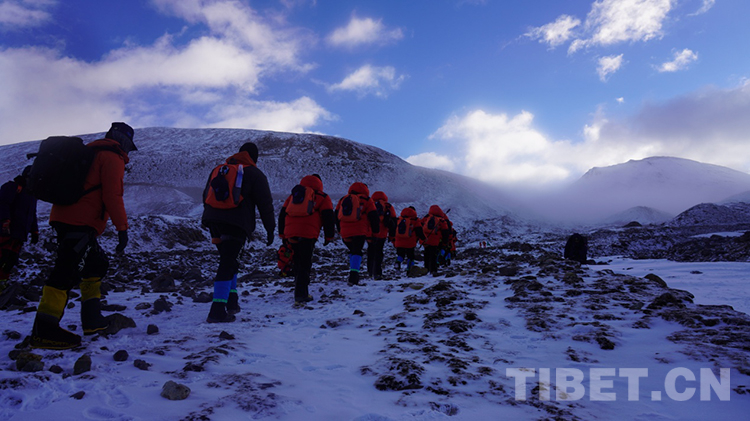 當(dāng)天凌晨4點(diǎn),西藏拉薩市當(dāng)雄縣羊八井鎮(zhèn)周圍還是一片寂靜之時(shí),參加洛堆峰登山探險(xiǎn)活動(dòng)的山友們已從羊八井高山訓(xùn)練基地出發(fā)前往洛堆峰登山探險(xiǎn)。經(jīng)過(guò)長(zhǎng)達(dá)7小時(shí)30分左右的長(zhǎng)途跋涉,第一批登山人員成功登頂海拔6010米的洛堆峰,此時(shí)金色的太陽(yáng)早已籠罩大地,白皚皚的雪山聳立在大地之上,在陽(yáng)光的照耀下顯得格外壯觀。