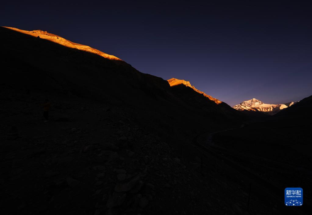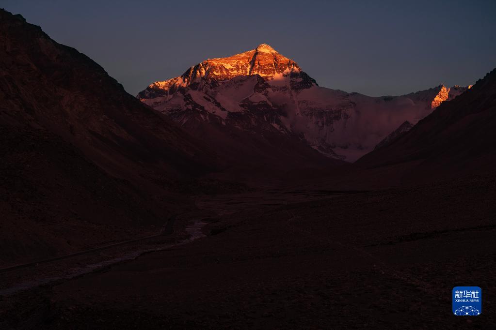 6月4日拍攝的太陽完全落山之后的珠峰。新華社記者 費茂華 攝