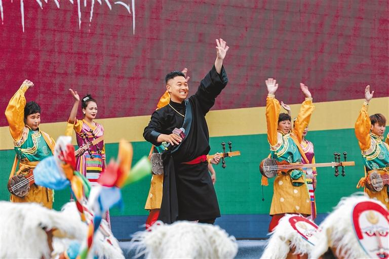 “尼木大峽谷·吞巴藏香源”第二屆藏香文化旅游節(jié)開幕式上,表演情景歌舞劇《藏香情緣》。