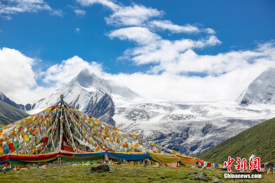 8月27日,記者在西藏那曲市比如縣拍攝到薩普雪山美景。薩普因雪豹而得名,位于比如縣羊秀鄉(xiāng)普宗溝內(nèi),全稱薩普貢拉嘎布。主峰色浦崗日海拔6996米,是喜馬拉雅山主峰北部的念青唐古拉山脈東段的最高峰。在薩普山腳有一個(gè)清澈如鏡的湖,全名堆烔薩錯(cuò)查仁,又稱薩木措,是由雪山千年冰雪融化所形成,自山腳延伸,分為兩部分,靠近山腳下的為冰川湖泊,終年不化;另一部分為主湖,湖水碧綠,湖內(nèi)魚兒成群。圖為薩普雪山景色。