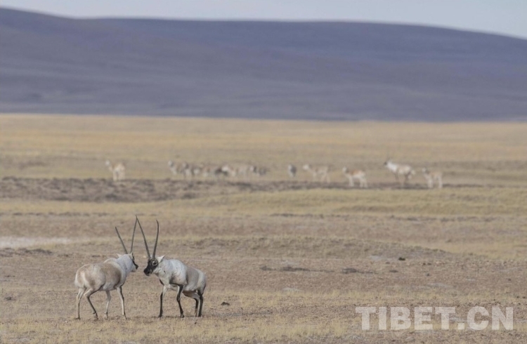 圖為羌塘自然保護(hù)區(qū)內(nèi),正在決斗的兩只強壯的公藏羚羊。 攝影:達(dá)瓦次仁