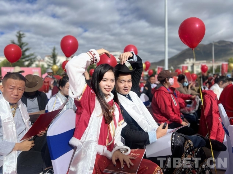 圖為民族團結模范夫妻現(xiàn)場證婚 攝影:德吉卓瑪