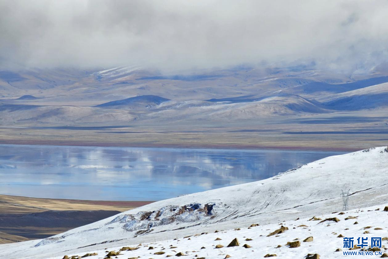 10月13日遠(yuǎn)眺雪中哲古湖。新華網(wǎng) 柑丹鴦琦 攝