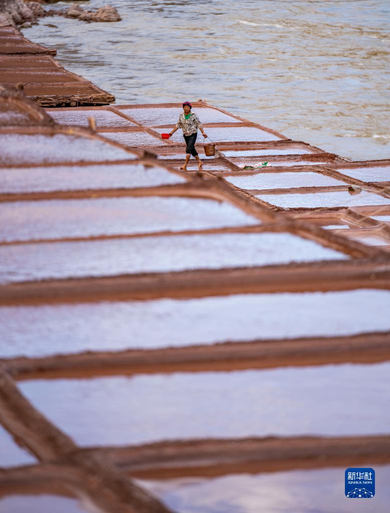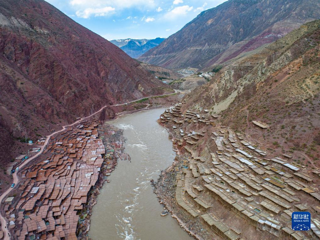 西藏昌都市芒康縣納西民族鄉(xiāng)位于瀾滄江畔,當(dāng)?shù)貜奶拼_始制鹽,距今已延續(xù)1300余年。鹽田在瀾滄江兩岸依山而建,由多根木柱搭架,架上用透水性強的泥土鋪成平面夯實。當(dāng)?shù)卮迕袢员3种嫉氖止覃}方式,他們從瀾滄江畔的鹽井、鹽池中取出鹵水倒入鹽田,經(jīng)陽光蒸曬、風(fēng)干,結(jié)晶成鹽。遠(yuǎn)遠(yuǎn)望去,鹽田錯落有致,景色奇美。