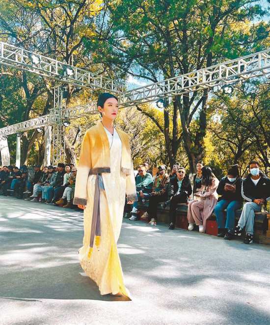來(lái)自杭州的模特王添玉給記者介紹了他展示的“星落”系列,該系列在傳統(tǒng)日喀則服飾的基礎(chǔ)上增添了許多時(shí)尚元素,色彩、廓形、材質(zhì)和制作工藝方面都有創(chuàng)新,更受當(dāng)下年輕人青睞。