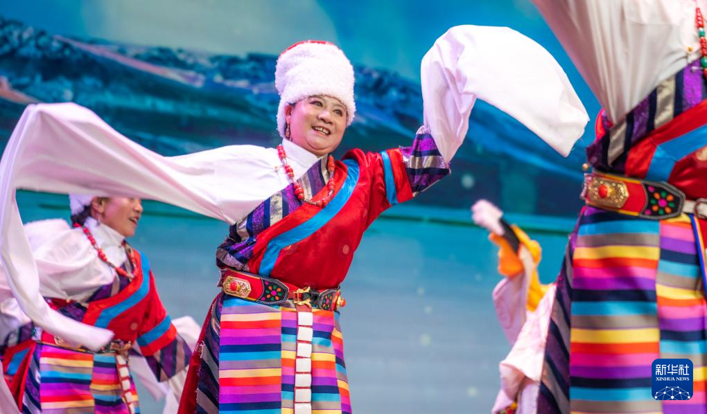 10月23日,老年文藝團(tuán)的演員們表演舞蹈節(jié)目。新華社發(fā)(丁增尼達(dá)攝)