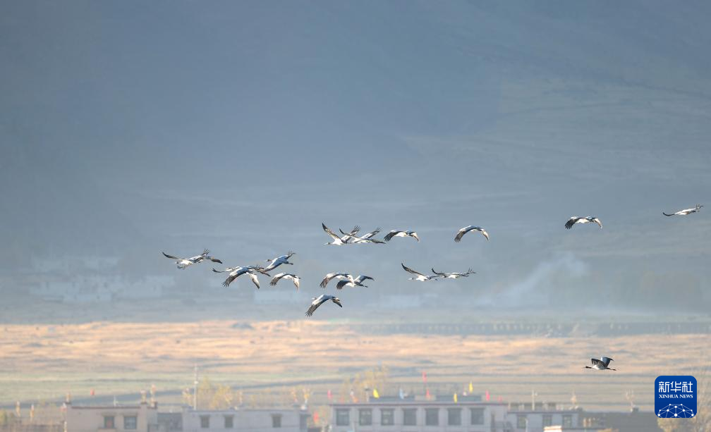 10月下旬,西藏自治區(qū)拉薩市林周縣迎來2023年第一批越冬黑頸鶴。它們將在這里一直待到來年三四月份。黑頸鶴是國家一級保護動物,主要棲息在海拔2500米至5000米的高原、草甸、沼澤地帶。拉薩北部的林周縣平均海拔約4200米,是黑頸鶴的主要越冬地之一?! ??