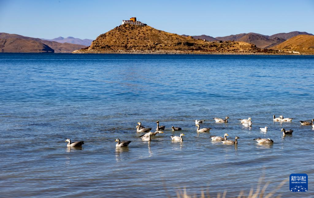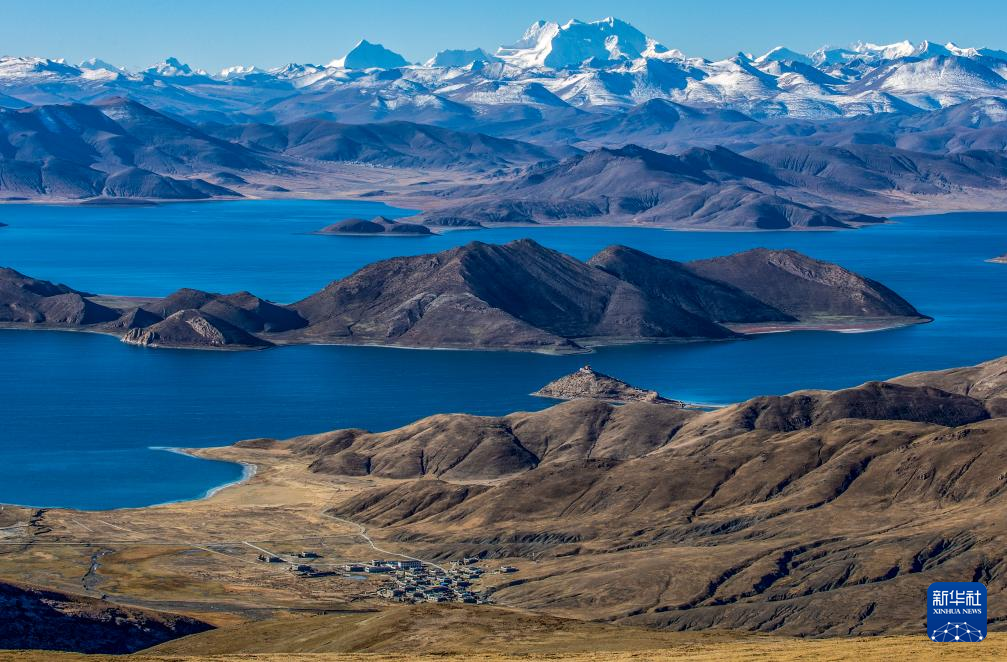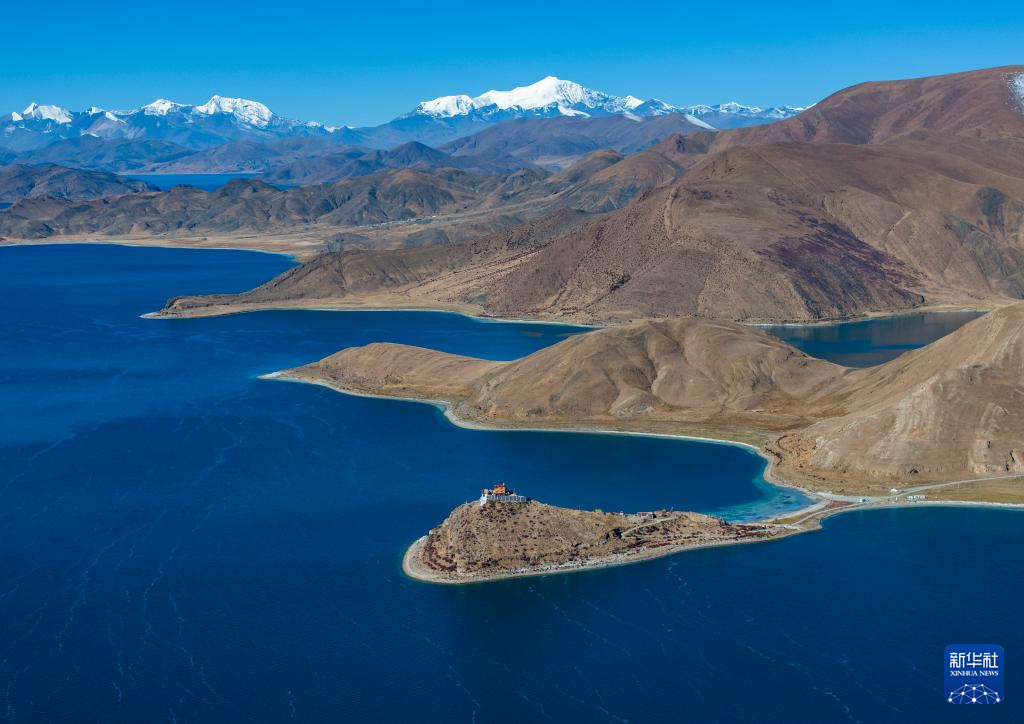 這是10月25日拍攝的羊卓雍錯和日托寺。新華社記者 姜帆 攝 ??