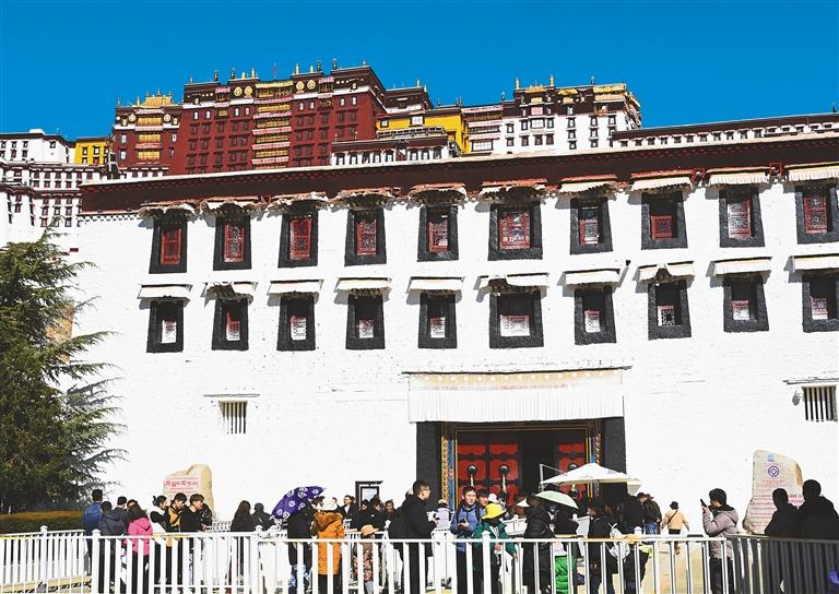 2023年11月1日至2024年3月15日為“冬游西藏”市場(chǎng)促進(jìn)活動(dòng)時(shí)間,在此期間,除寺廟景區(qū)外,西藏自治區(qū)所有A級(jí)景區(qū)免費(fèi)游覽?;顒?dòng)啟動(dòng)以來(lái),布達(dá)拉宮作為游客來(lái)藏旅游的首選之地,日均接待量達(dá)4000余人次。 圖為游客正在有序進(jìn)入布達(dá)拉宮。 記者 洛桑 攝