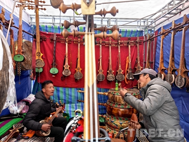 “參加雅礱物交會是扎念琴銷售的重要渠道,上一屆雅礱物交會,會期還沒結束帶的產品都賣光了,所以這次特意提前準備、多備了一些貨品,相信會賣得很好。”今年36歲的次仁多吉是山南市加查縣人,17歲時,次仁多吉開始跟隨父親學習扎念制作技術,如今能夠熟練制作扎念琴。在他的攤位上,悠揚的的扎念琴聲不斷傳出,吸引了不少逛展群眾駐足,他也會熱情邀請群眾體驗扎念琴彈奏并簡單介紹構造等希望扎念琴文化推廣得更遠。