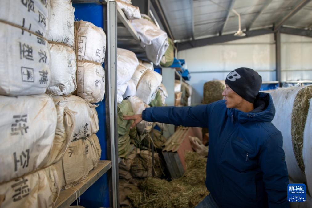 當?shù)馗刹吭诙砭绵l(xiāng)農牧業(yè)防抗災物資儲備庫里盤點物資庫存。這里草料、爐子、棉服、煤炭、除雪工具等一應俱全(12月18日攝)。新華社記者 姜帆 攝