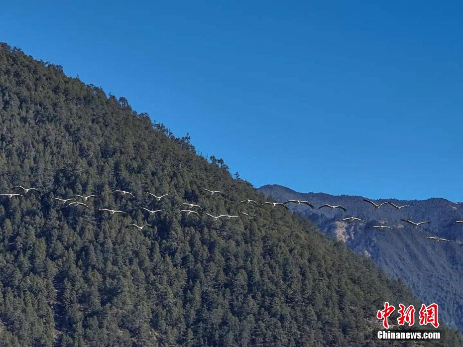 西藏米林迎來大批黑頸鶴越冬