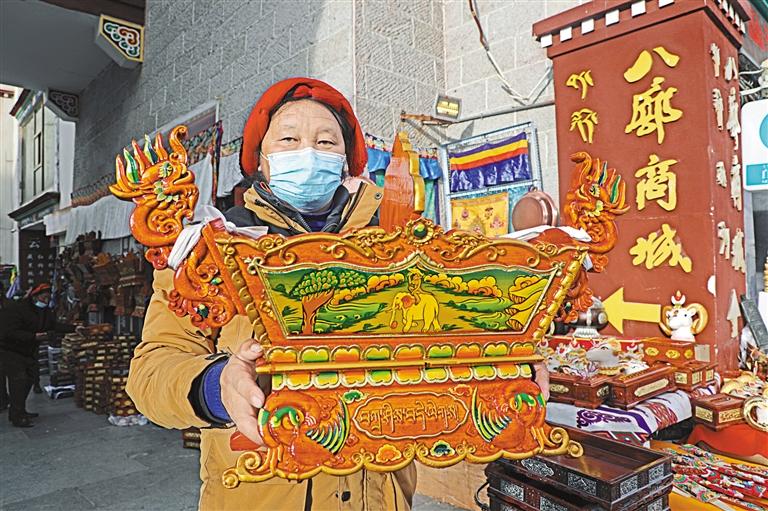 “今年,我們搬了新家,想購(gòu)置一款大一些的‘切瑪’盒擺放家中,彩繪‘切瑪’盒看著顏色喜慶,純?cè)旧摹鞋敗锌粗饲f大氣,價(jià)格也差不多,這讓我有些不知道如何選擇?!卑赚斞胱谧屑?xì)端詳著手中的“切瑪”盒糾結(jié)地說(shuō)。