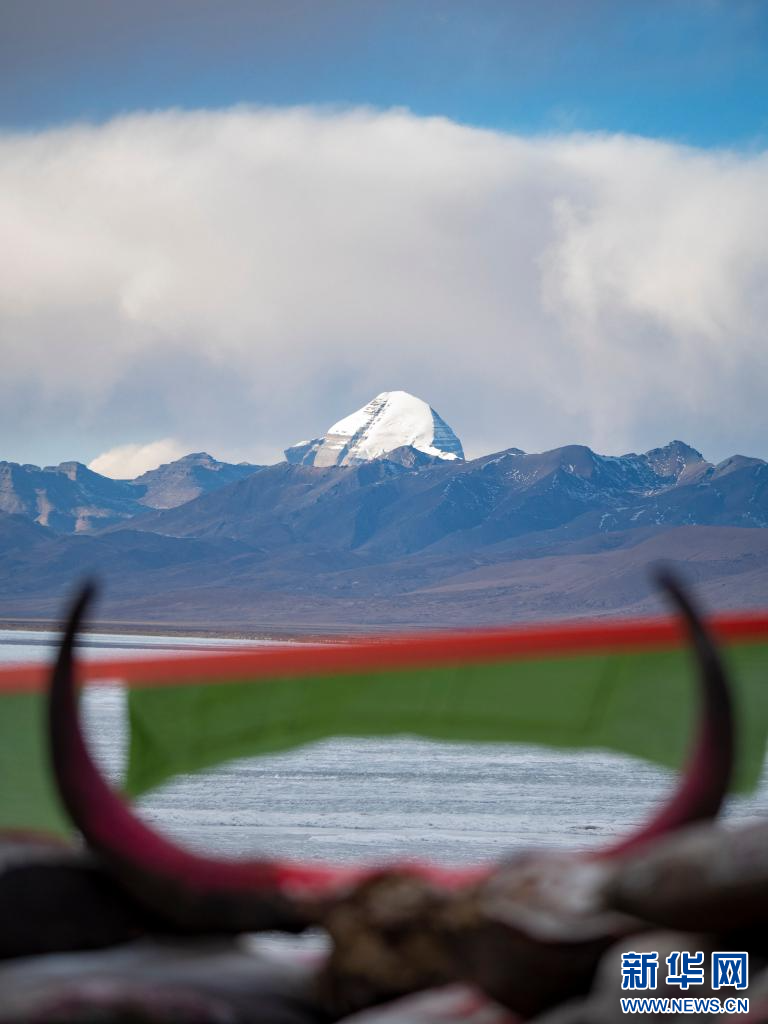 1月29日從瑪旁雍錯(cuò)湖邊拍攝的岡仁波齊峰。新華網(wǎng) 旦增努布 攝