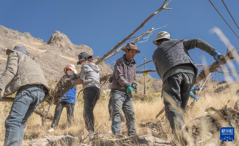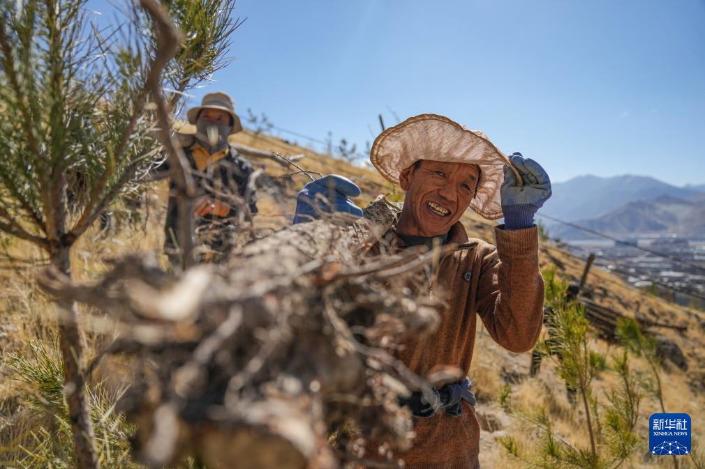 3月12日,東嘎社區(qū)二組村民在搬運樹苗。新華社記者 晉美多吉攝 ??