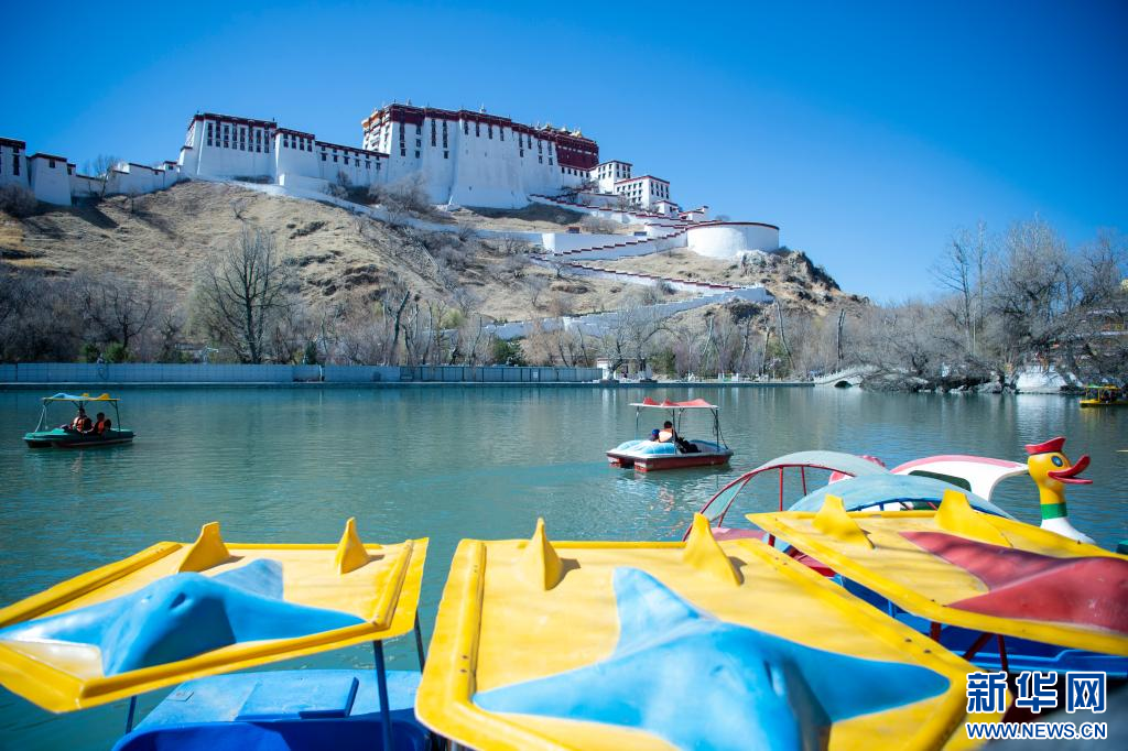 3月15日,位于布達拉宮腳下的宗角祿康公園內,游客在乘船游玩。新華網 旦增努布 攝