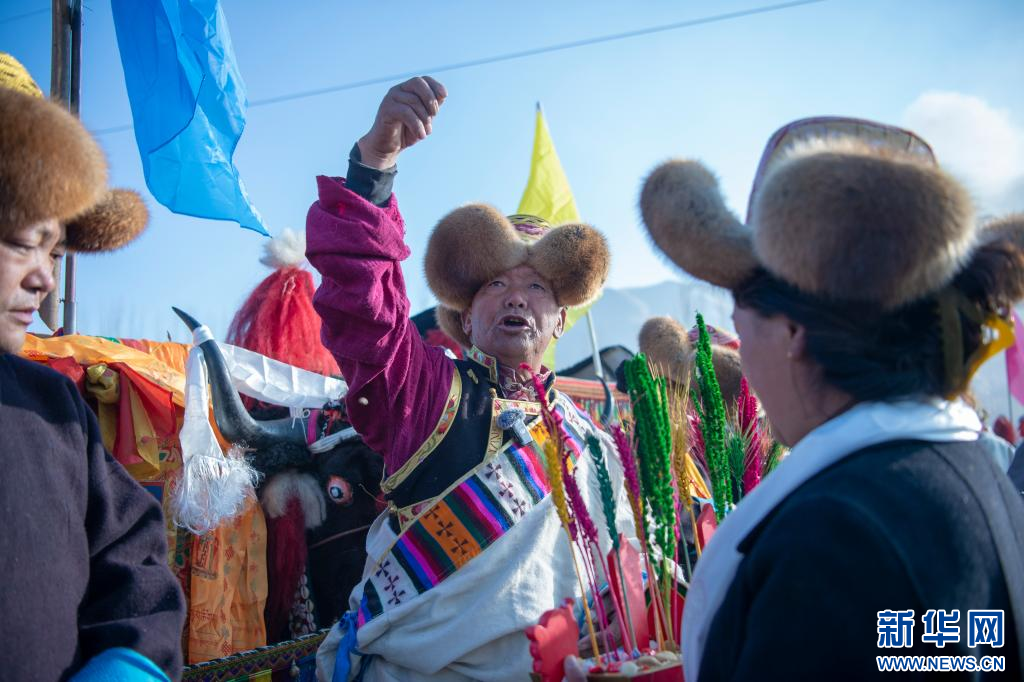 3月16日,克松社區(qū)居民格桑多吉(中)在參加春耕儀式。新華網(wǎng) 旦增努布 攝 ??