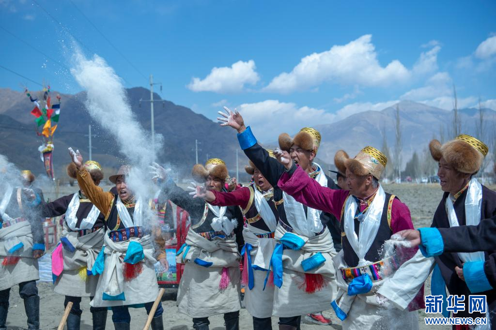 3月16日,克松社區(qū)居民在參加春耕儀式,播撒種子。新華網(wǎng) 旦增努布 攝 ??