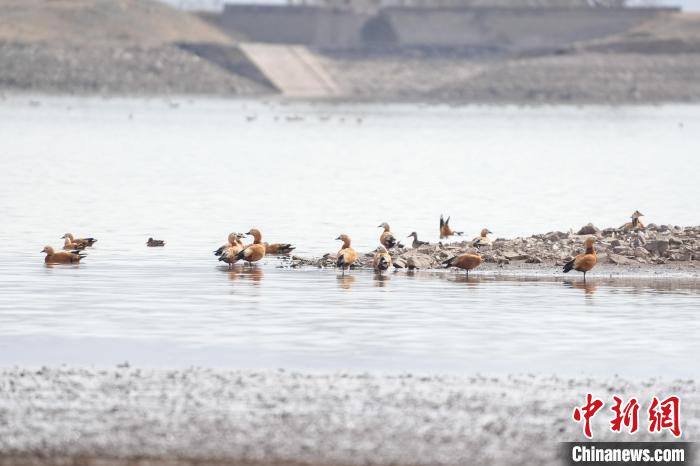 圖為斑頭雁、赤麻鴨在林周縣虎頭山水庫(kù)嬉戲。貢嘎來松 攝