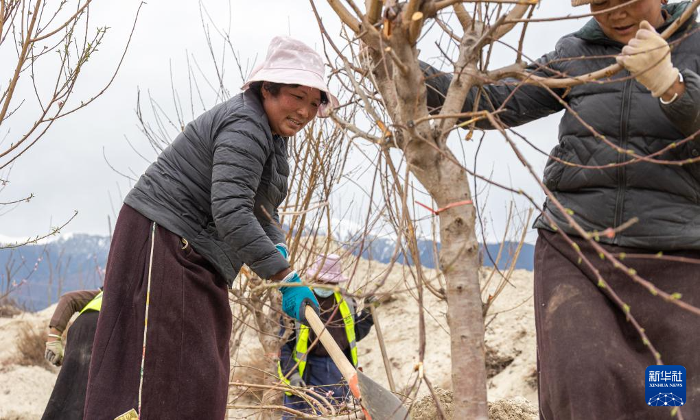 “這里以后也會(huì)成為桃花園!”56歲的嘎拉村村民尼瑪曲吉說(shuō)。在嘎拉村外尼洋河的河灘上,她和村民們正在種桃樹,挖坑、正苗、培土,累了就唱幾句藏歌。聽到記者叫了一聲“阿佳”(藏語(yǔ)大姐之意),尼瑪曲吉熱情招手。