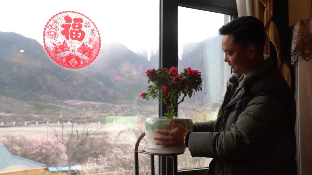 下午4點(diǎn),林芝市波密縣傾多鎮(zhèn)古通村,遠(yuǎn)來(lái)的游客入住到村民洛松頓珠開辦的民宿。寬敞的客廳里,藏式家具整齊大氣,窗外古老的桃花樹隨風(fēng)散落著陣陣花雨。